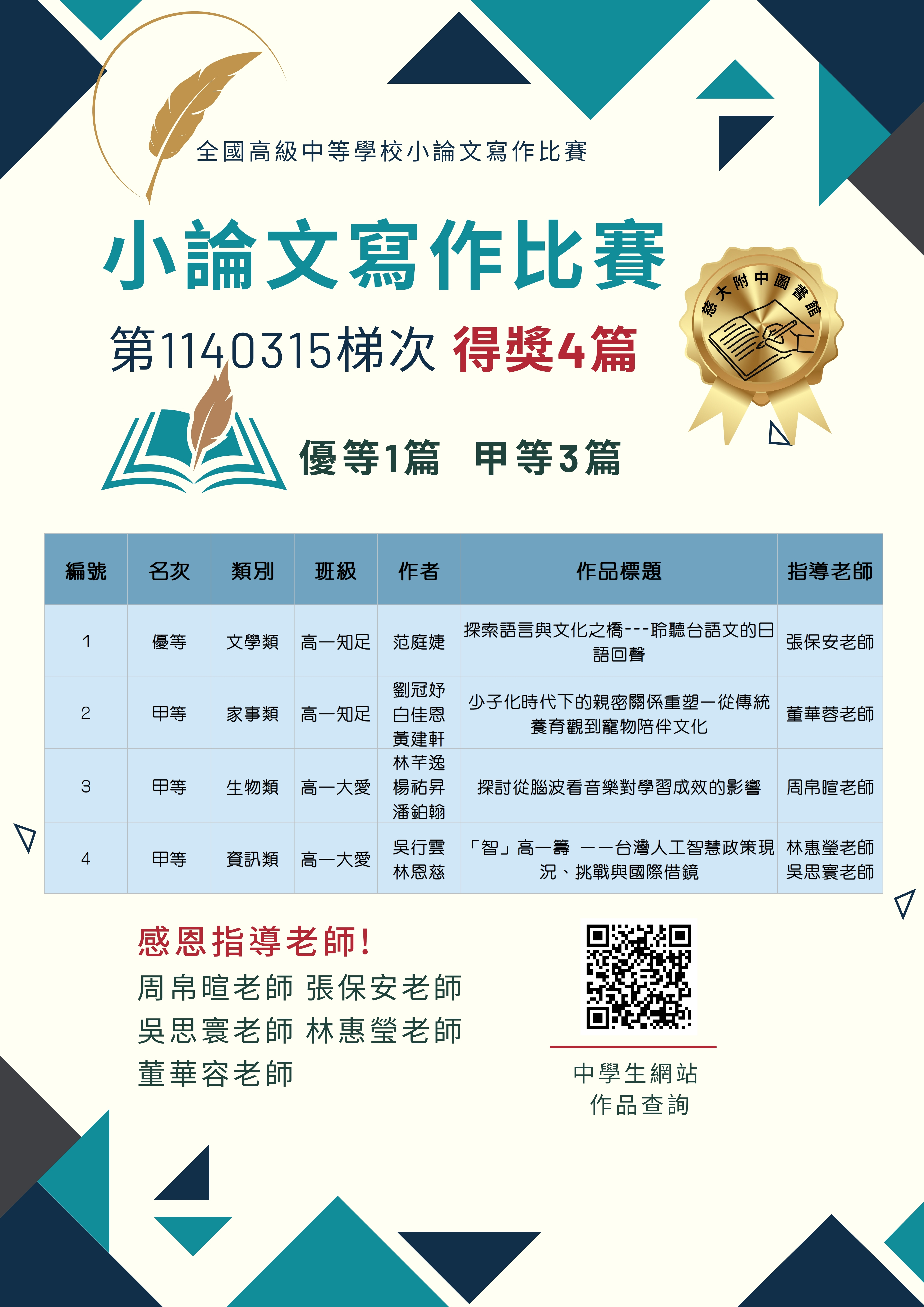 小論文第1140315梯次 小論文第1141015梯次