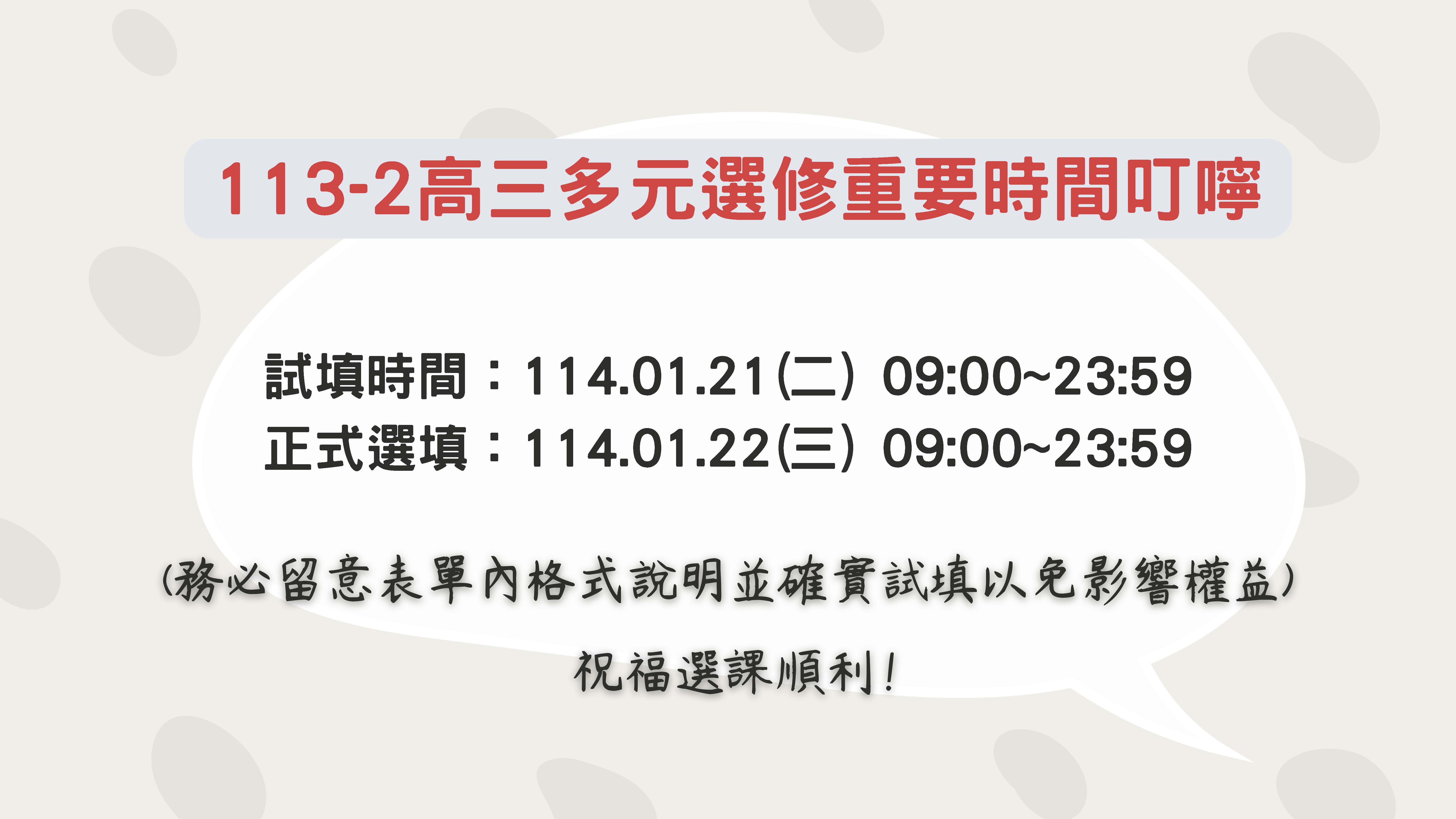 高三多元選修課程重要叮嚀